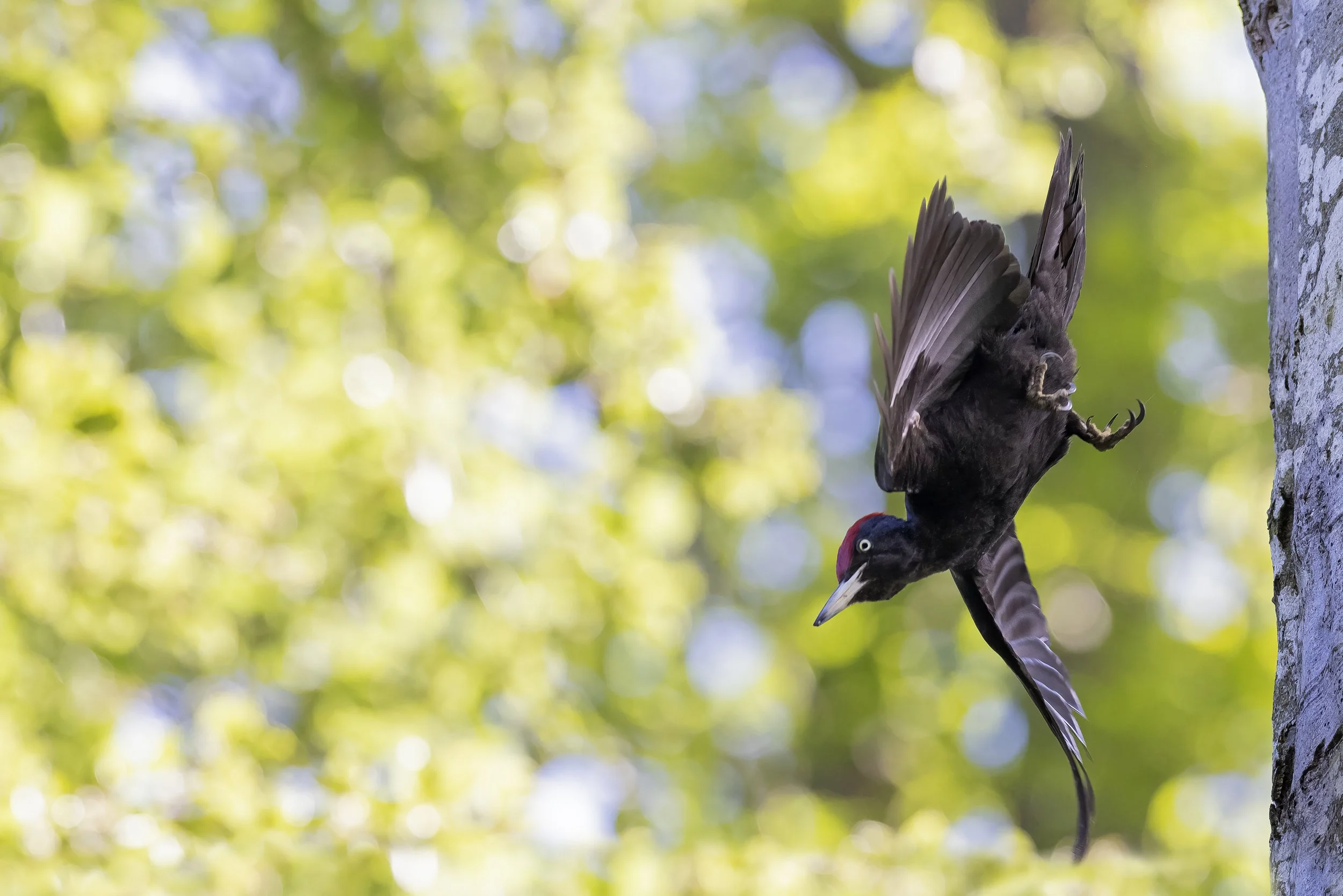 Pic noir (Dryocopus martius), l'envol en piqué